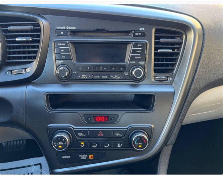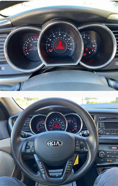 Introducing the 2013 Kia Optima LX, a stylish and efficient sedan that combines performance with comfort. Powered by a 2.4L I4 engine generating 200 horsepower and 186 ft-lbs of torque, this vehicle offers a smooth and responsive driving experience. With a striking Titanium Silver exterior complemented by a Gray interior, the Optima presents a modern and sophisticated look.