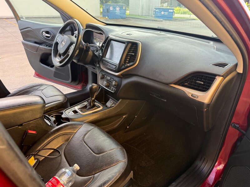 Factory default features include leather-trimmed seating, a premium audio system, a touchscreen infotainment system with Bluetooth connectivity, and a rearview camera for added safety. Enjoy the convenience of keyless entry, dual-zone climate control, and an advanced navigation system. With impressive fuel efficiency of 21 MPG in the city and 29 MPG on the highway, this Jeep Cherokee Limited is not only capable but also economical. This vehicle is in excellent overall condition, ready for your next adventure.