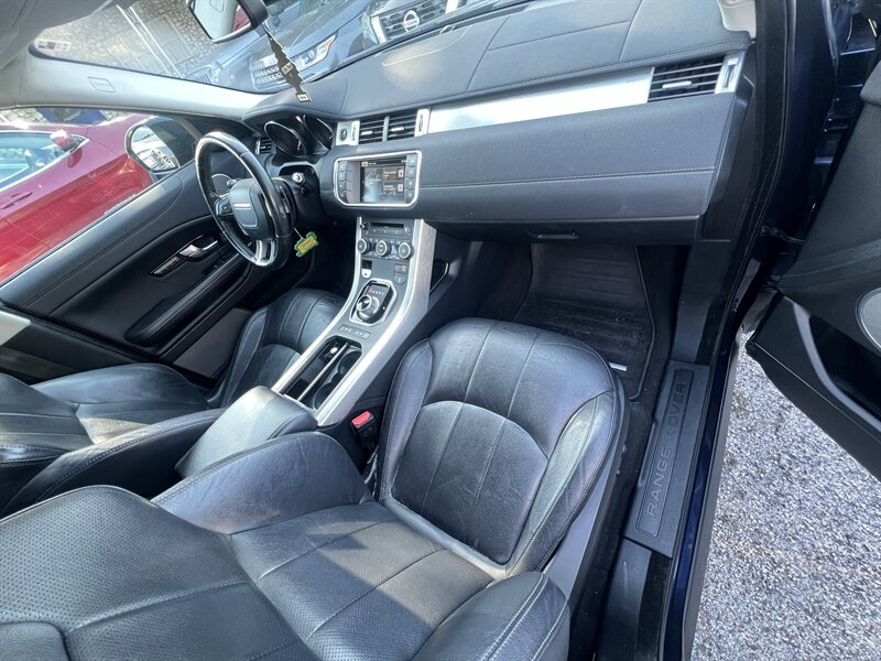 Experience luxury and capability with this 2016 Land Rover Range Rover Evoque SE, featuring a powerful 2.0L Turbo I4 engine that delivers 240 horsepower and 250 ft-lbs of torque. With a striking Baltoro Ice Metallic exterior and a sophisticated Ebony interior, this vehicle combines style with comfort. It comes equipped with a range of factory-default features, including a panoramic sunroof, leather upholstery, a touchscreen infotainment system, and a premium sound system. Additional highlights include all-wheel drive for enhanced traction, a rearview camera for added safety, and advanced climate control for a comfortable ride. With less than 94,000 miles, averaging under 10,000 miles per year, this Evoque offers excellent mileage of 21 MPG in the city and 30 MPG on the highway, making it an ideal choice for both urban driving and weekend adventures. This vehicle is in excellent overall condition, ready to deliver a premium driving experience.