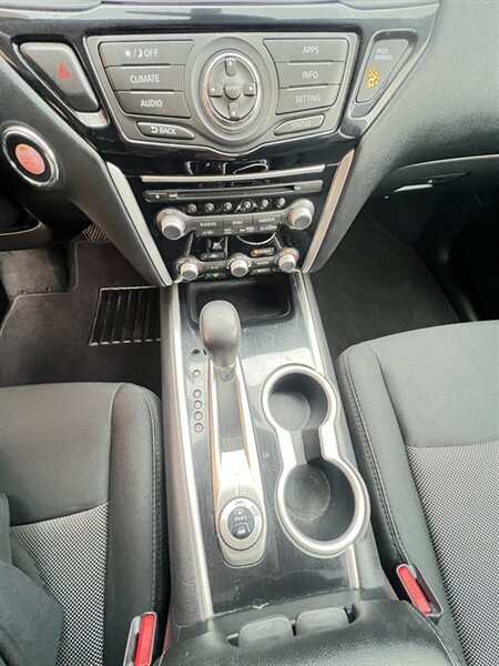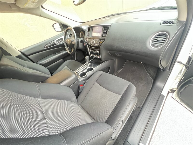This Pathfinder S comes equipped with a variety of factory default features, including a 7-inch touchscreen display with Nissan's infotainment system, Bluetooth connectivity for hands-free calling, and a rearview camera for added safety. Additional standard features include tri-zone automatic climate control, keyless entry, and a 6-speaker audio system.
